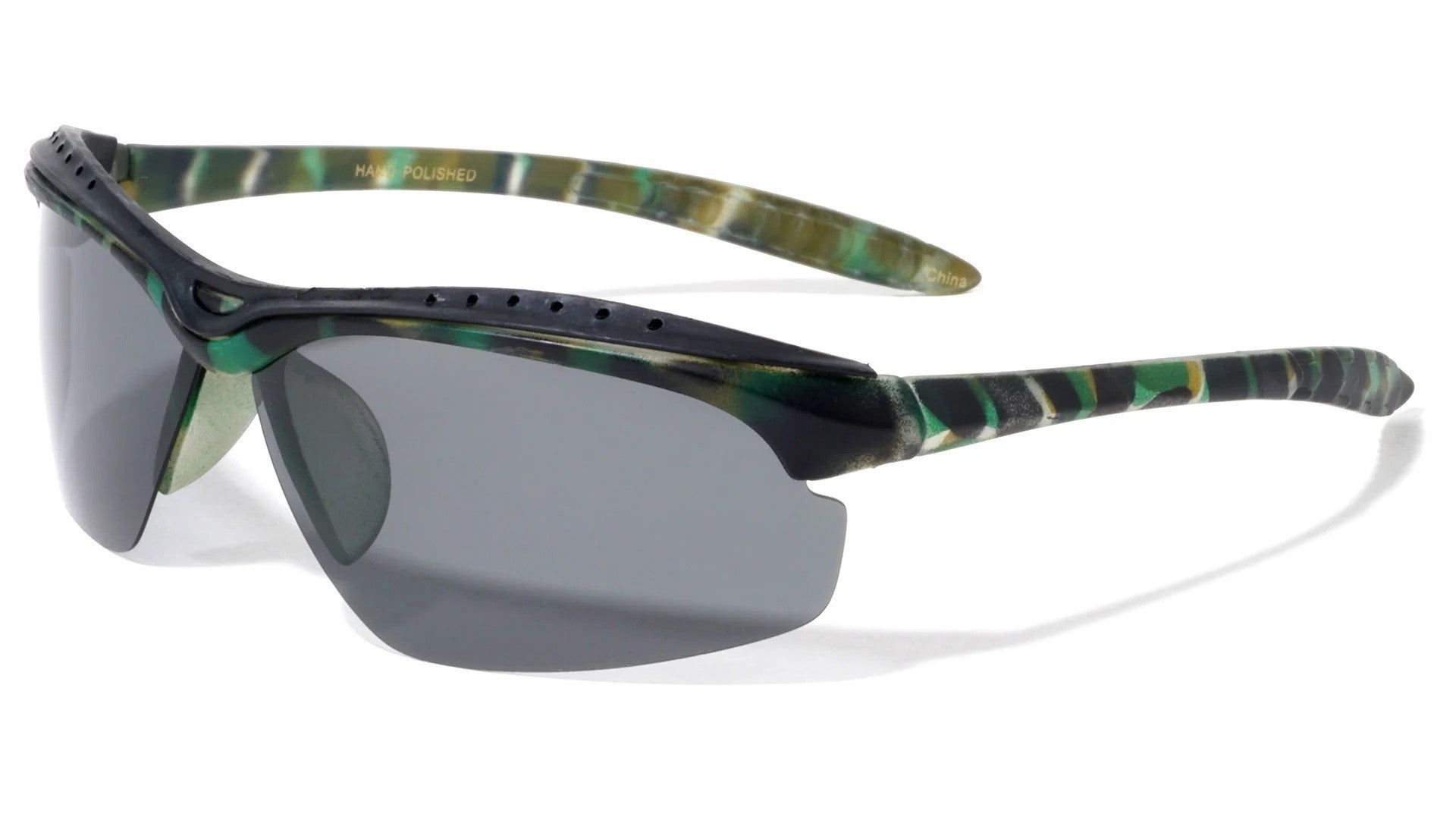 Stock your shelves with Polarized Semi Rimless Camouflage Sports Sunglasses, featuring lightweight wrap construction, durable plastic frames, and glare reducing polarized lenses ideal for outdoor performance. Designed for athletes and adventure customers, this high demand style offers camo color options, secure fit comfort, UV protection, and strong retail appeal for sporting goods stores, kiosks, and seasonal promotions and displays nationwide.
